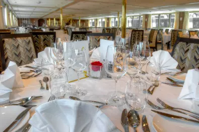 Zahlreiche Mitarbeiter in Küche und Restaurant sorgen täglich für Ihr leibliches Wohl an Bord. Genussvolle Menüs durch fest eingespielte Küchenteams werden für Sie zubereitet."Essen, was das Herz begehrt" - Zahlreiche Mahlzeiten von früh bis spät - einschließlich Nachmittags-Kaffeezeit, Kapitänsempfang und Kapitäns-Dinner mit festlichem Menü. Essen ohne eng gefasste Essenszeiten immer in einer Tischzeit! Auf Wunsch servieren wir Ihnen auch Gerichte für spezielle Diäten (Diabetiker, Glutenfrei, Laktosefrei, Vegan etc.)