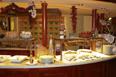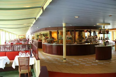 - Umfangreiches Frühstücks-, Mittags- und Dinnerbuffet mit Live-Cooking, zusätzlicher Einschiffungssnack sowie Kaffee- und Teestunde
