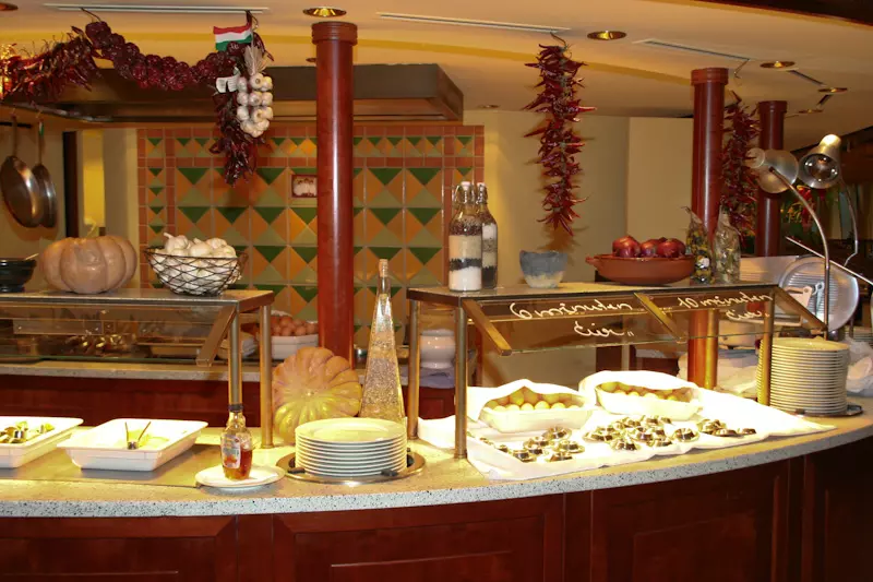 - Beim Abendessen Wahl zwischen einem servierten Menü oder freier Auswahl am Gourmet-Buffet sowie besondere Welcome- & Farewell-Abende
