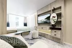 MEHR PLATZ: Die Standardkabinen auf Deck 2 und 3 sind 21 m² groß, gliedern sich in einen separierten Schlaf- und Loungebereich und verfügen über einen Balkon mit Sitzgelegenheit für zwei Personen.
