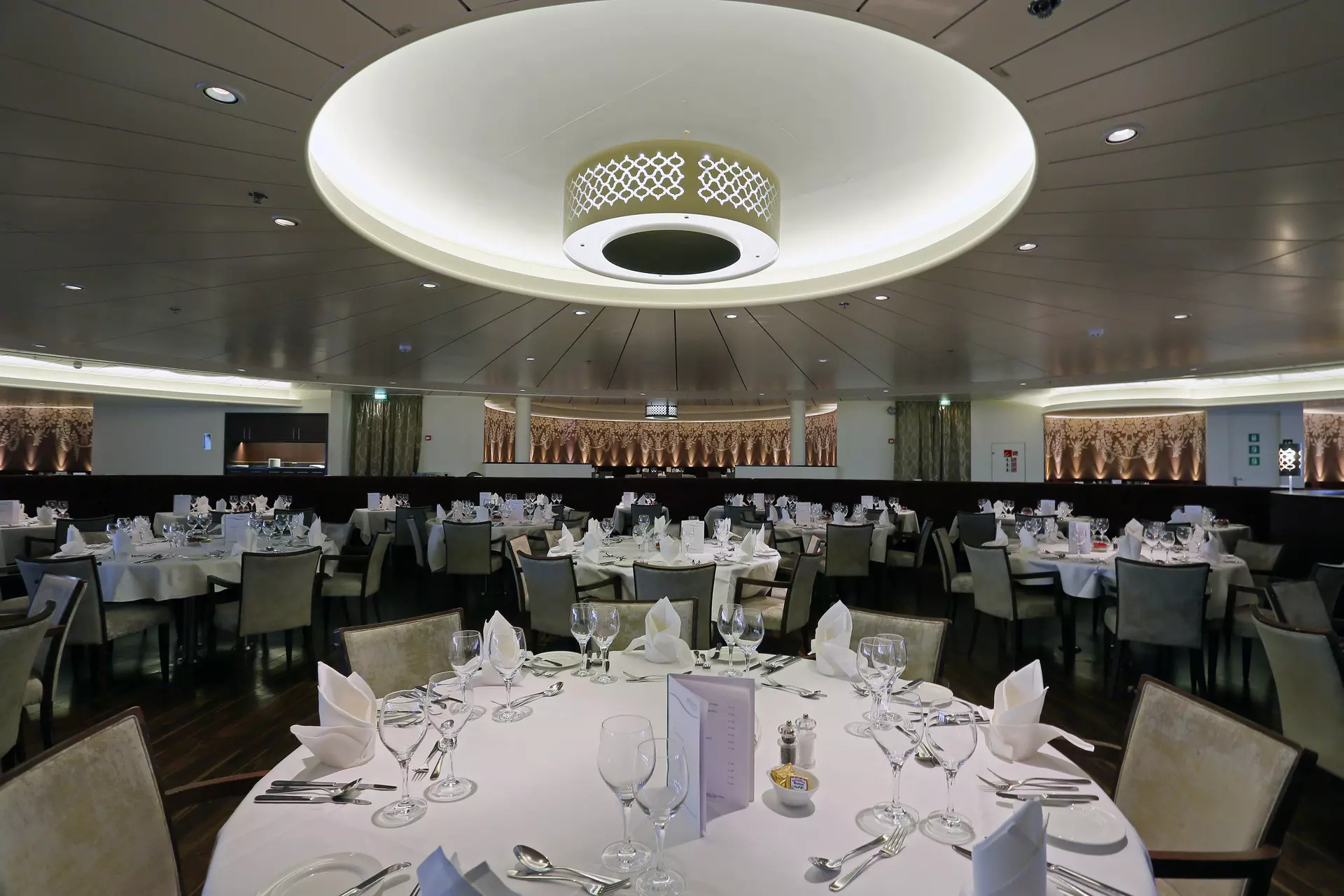 An Bord lässt es sich nach Herzenslust schlemmen. Zwei gleichwertige Restaurants mit großen Panoramafenstern stehen zur Auswahl, um sich bei freier Platzwahl während langer Öffnungszeiten ganz nach Wahl, früher oder später (inklusive Säfte und Tischwein zum Mittag- und Abendessen) kulinarisch verwöhnen zu lassen. Das Lido Buffet-Restaurant mit Frühstücks- und Mittagsbuffet bietet auch abends mit Buffets eine weitere Option für all diejenigen, die es zwanglos mögen. Bei gutem Wetter können auch die Außenplätze auf der Sonnenterrasse oder im Außenpoolbereich genutzt werden. Neben den Hauptmahlzeiten gibtes ein Frühaufsteher-Frühstück, die 11:00 Uhr-Bouillon, Kaffee und Kuchen sowie den traditionellen Mitternachtssnack. Selbstverständlich darf auch das festliche Captain’s Dinner nicht fehlen.